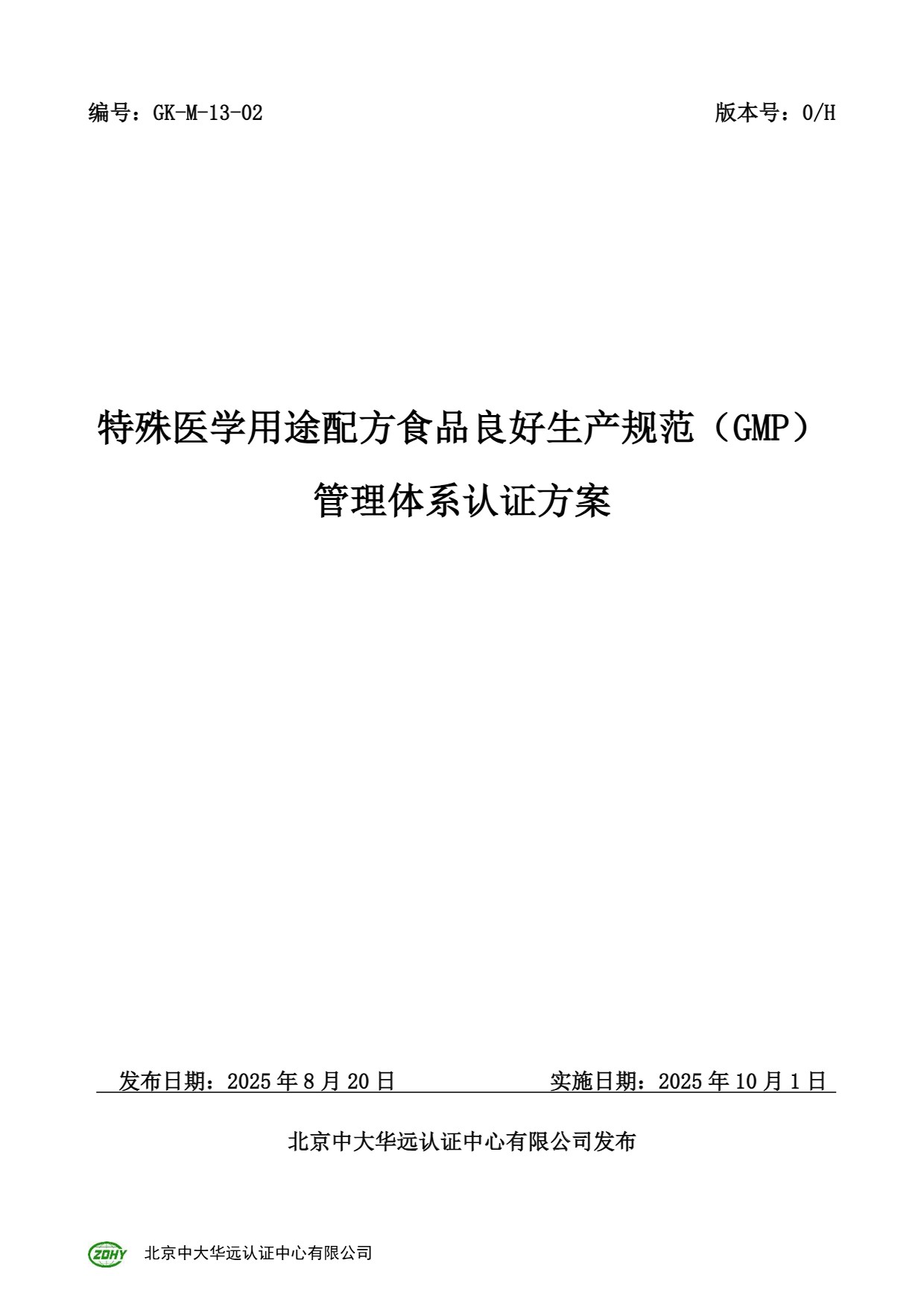 GK-M-13-02 特殊医学用途配方食品良好生产规范(GMP)管理体系认证方案