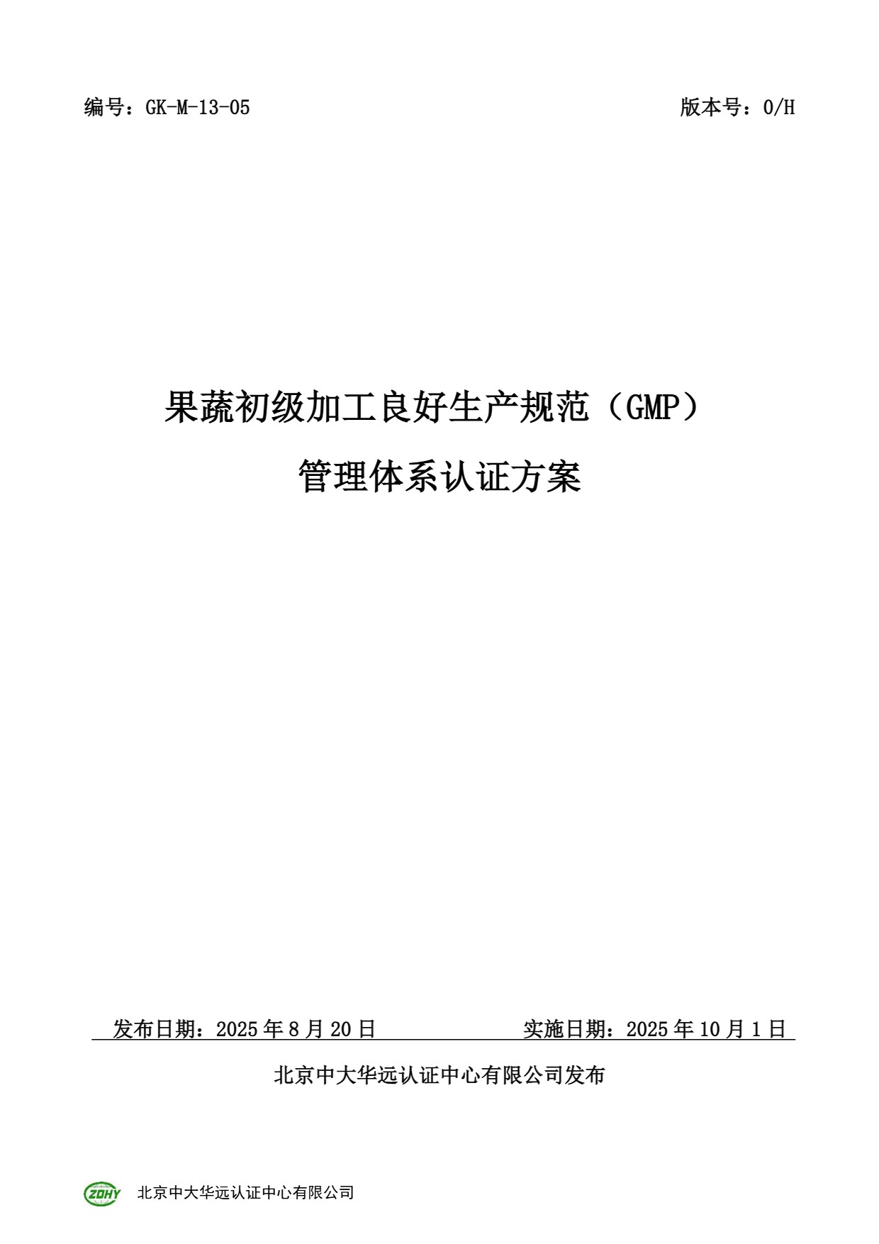 GK-M-13-05 果蔬初级加工良好生产规范(GMP)管理体系认证方案