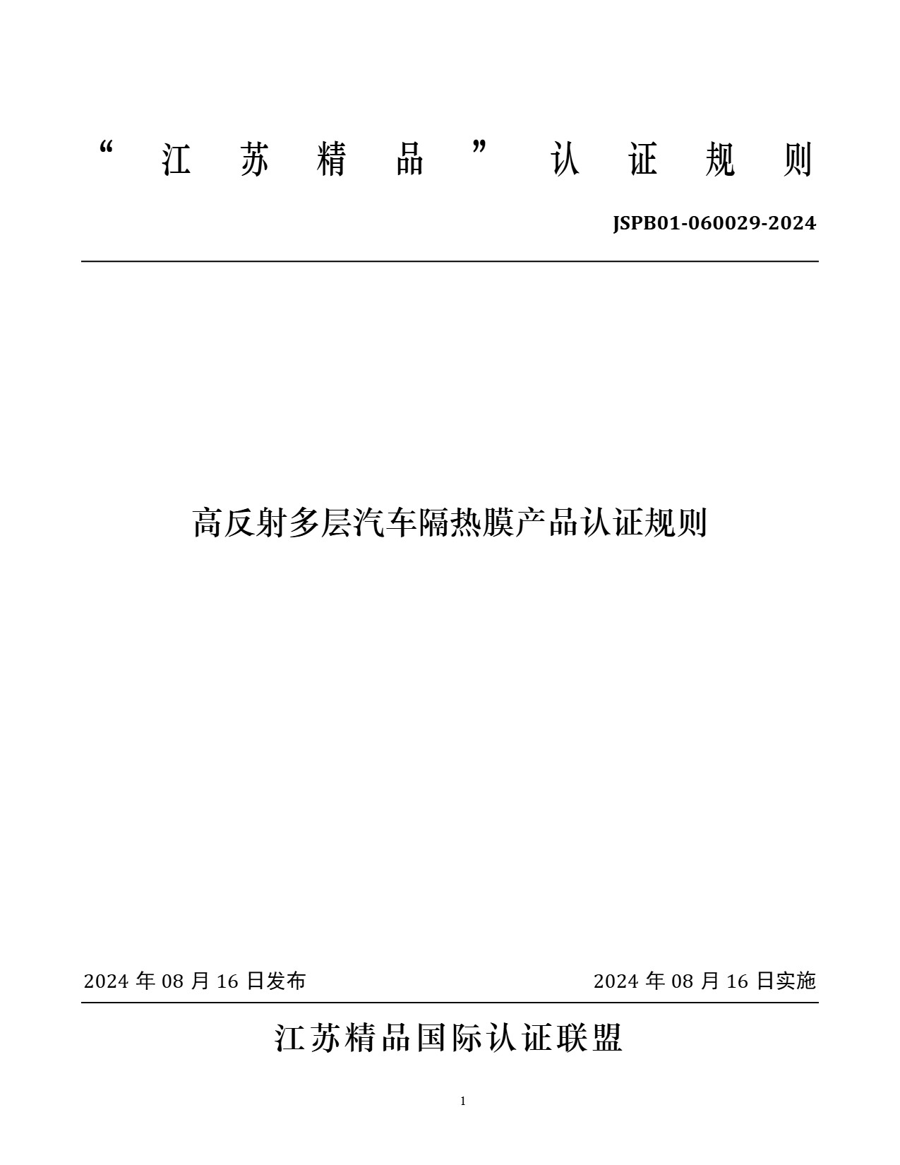 JSPB01-060029-2024 高反射多层汽车隔热膜产品认证规则