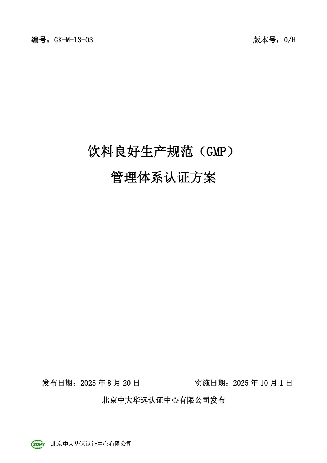 GK-M-13-03 饮料良好生产规范(GMP)管理体系认证方案