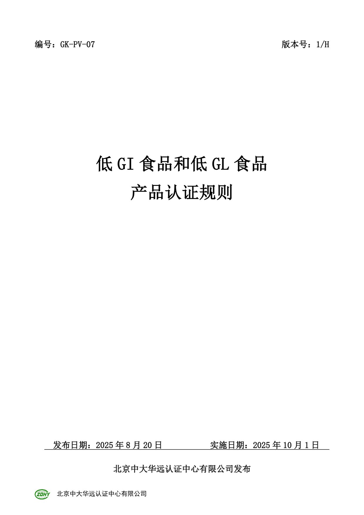GK-PV-07 低GI食品和低GL食品产品认证规则