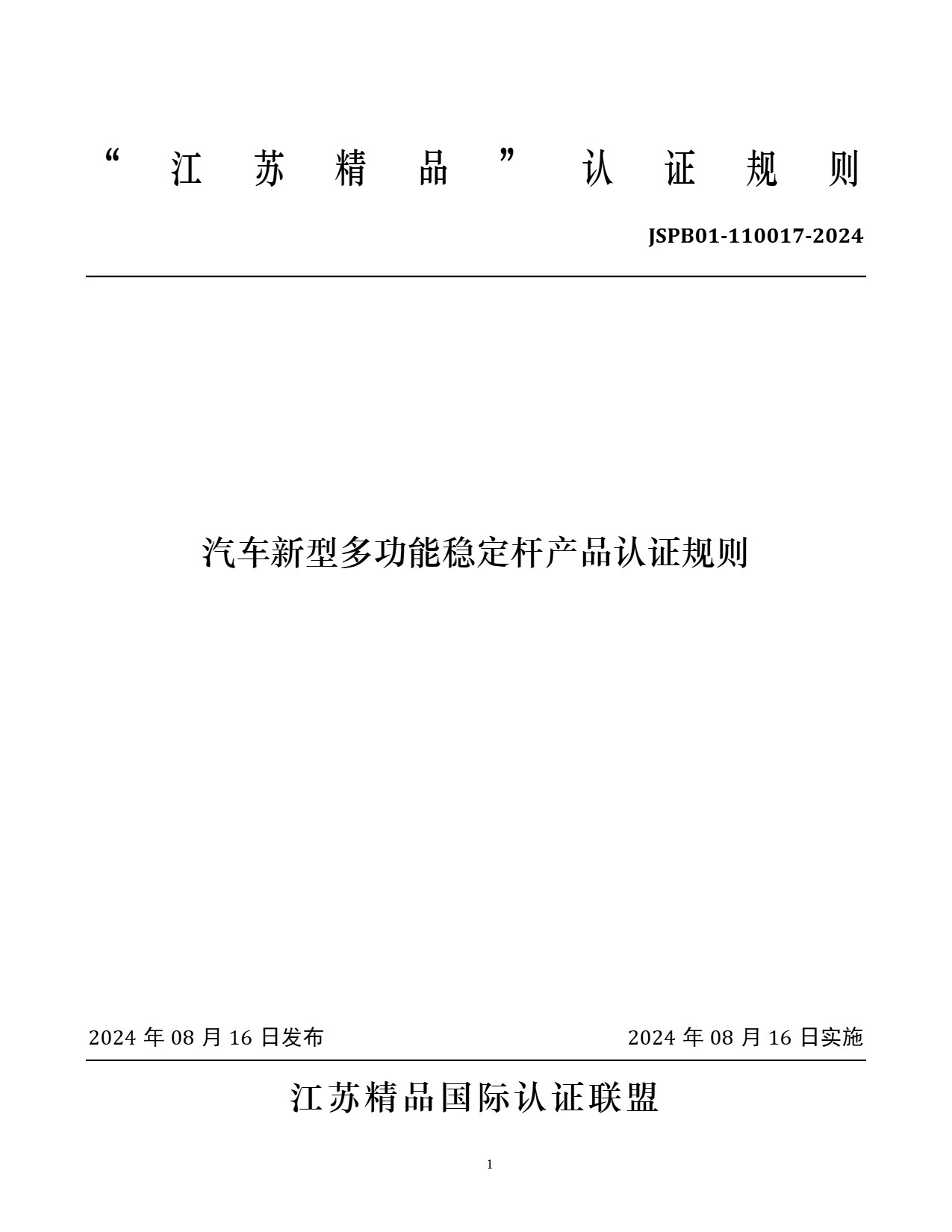 JSPB01-110017-2024 汽车新型多功能稳定杆产品认证规则